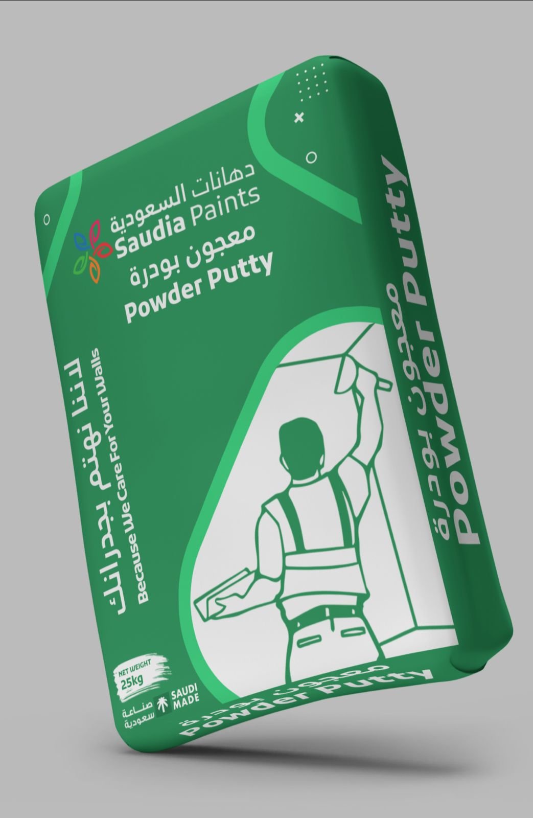 Saudia powder putty provides superior surface preparation, filling uneven areas and creating a flawless foundation for painting.